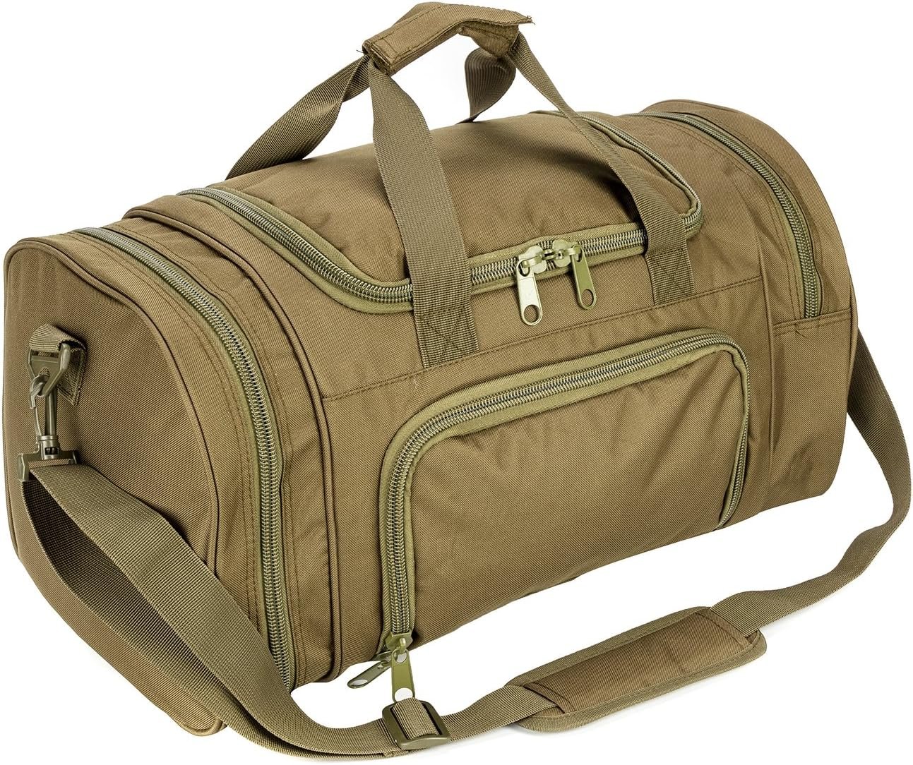 - 👟The military duffel bag with 21”*10”*13” and 45L. The bag is made of 600 denier polyester lined with PVC and waterproof,wearable and durable.Model B has SYSTEM on the side. There are two larger bags on both sides of Model A.